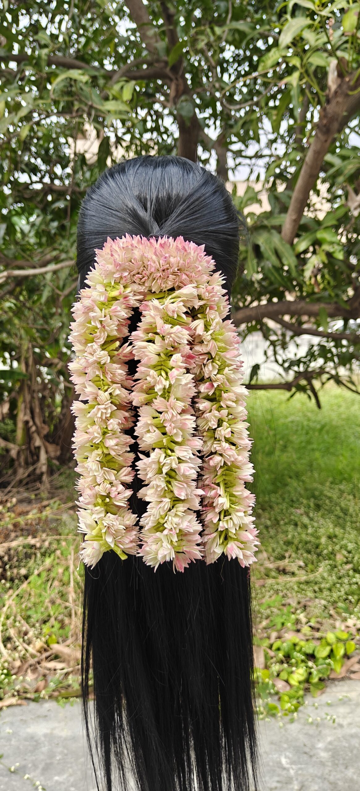 • 🌸 Bloomed Jathi Flowers – Soft, full, and realistic blooms for an elegant finish.