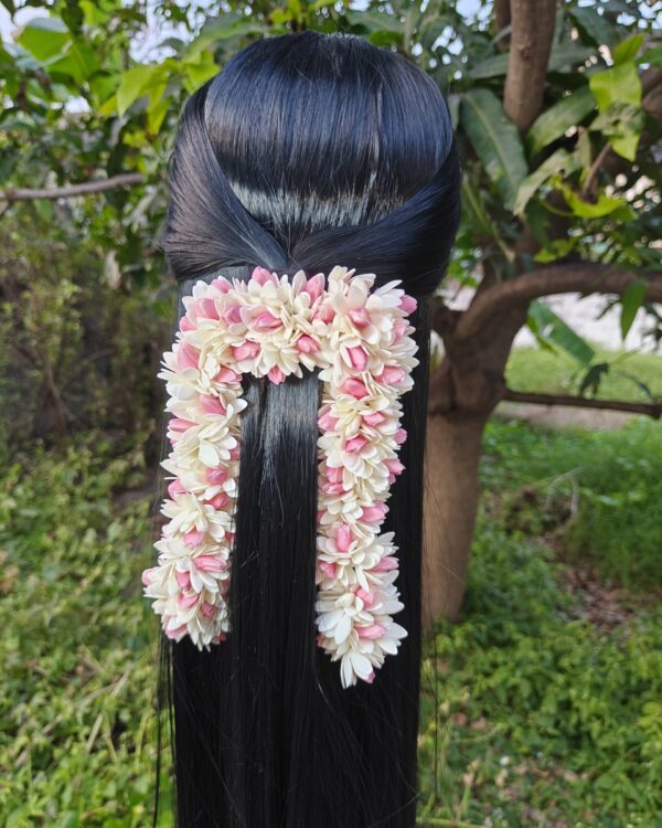 🌼 Classic Madras Malli Strings – Crafted with soft malli-style blooms for a neat and traditional floral finish.